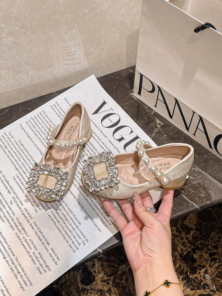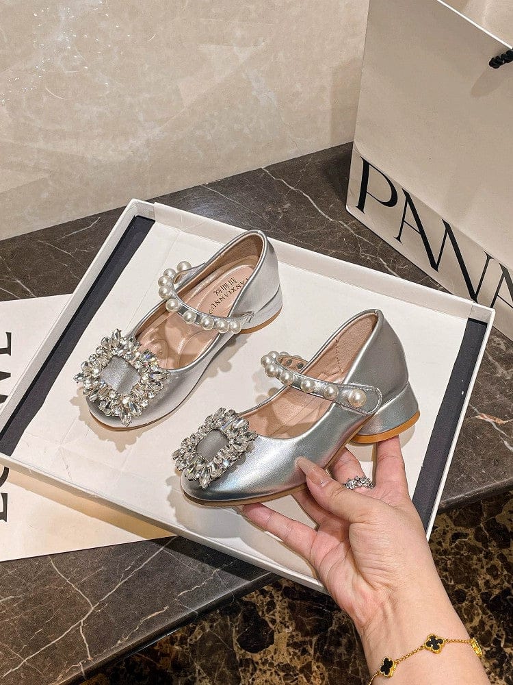 Add a touch of sparkle to every step with the Sunnypetal Girls’ Silver Crystal Party Shoes. Designed for little princesses who love to shine, these charming heels feature shimmering square rhinestones and delicate pearls that catch the light beautifully. The soft rubber sole ensures comfort and stability, while the hook-and-loop closure makes them easy for kids to wear and secure. Crafted from premium leather, they combine elegance with everyday ease—perfect for parties, weddings, or any moment worth celebrating. Let her feel confident, graceful, and radiant in every twirl.