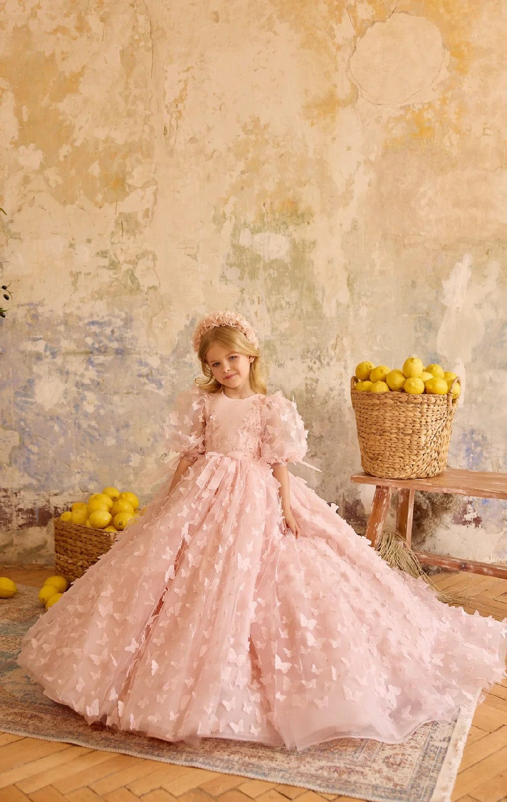 Sunnypetal’s Dreamy Pink Tulle Flower Girl Gown brings a touch of fairytale elegance to every special moment. Layers of airy tulle bloom with delicate 3D butterflies, while the soft scoop neckline and puff sleeves give your little one a sweet, angelic charm. Finished with a graceful court train that floats with each step, this exquisite ball-gown design turns birthdays, weddings, and pageants into scenes of pure enchantment. With Sunnypetal, every girl shines like the star of her own story.