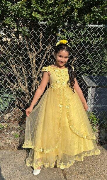 6m / Light Yellow Sunnypetal Ball-Gown Tulle Lace Flower Girl Dress With Beading/3D Floral